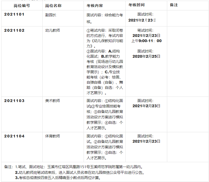 备注:1.笔试、面试地址:玉溪市红塔区凤凰路151号玉溪师范学院附属第一幼儿园内。