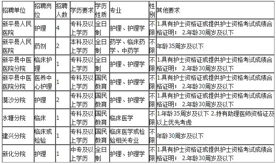 二、紧密型医共体新平县人民医院、漠沙分院、水塘分院、建兴分院、新化分院的招聘事宜如下: