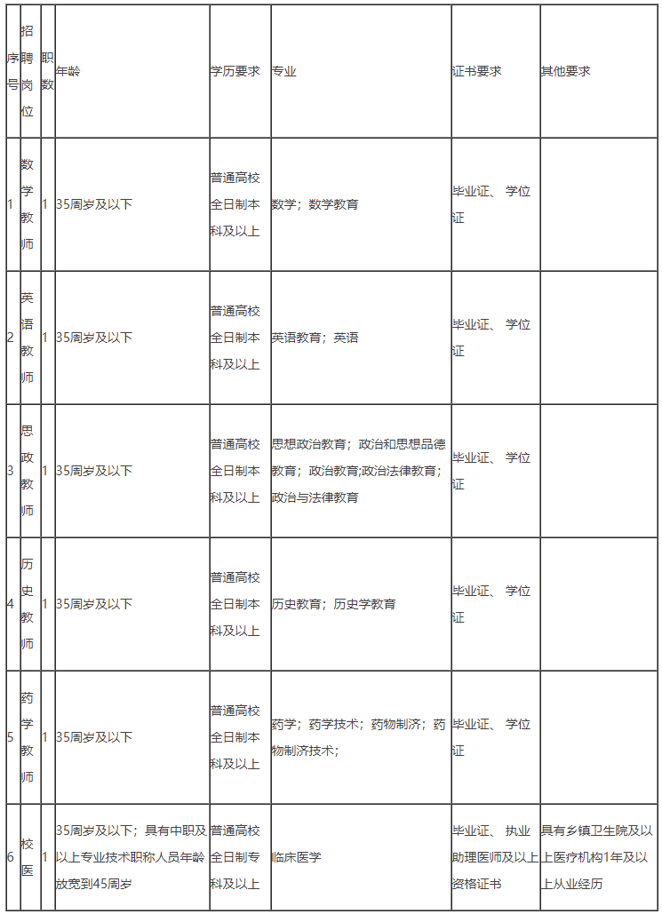 1、招聘岗位和要求见下表: