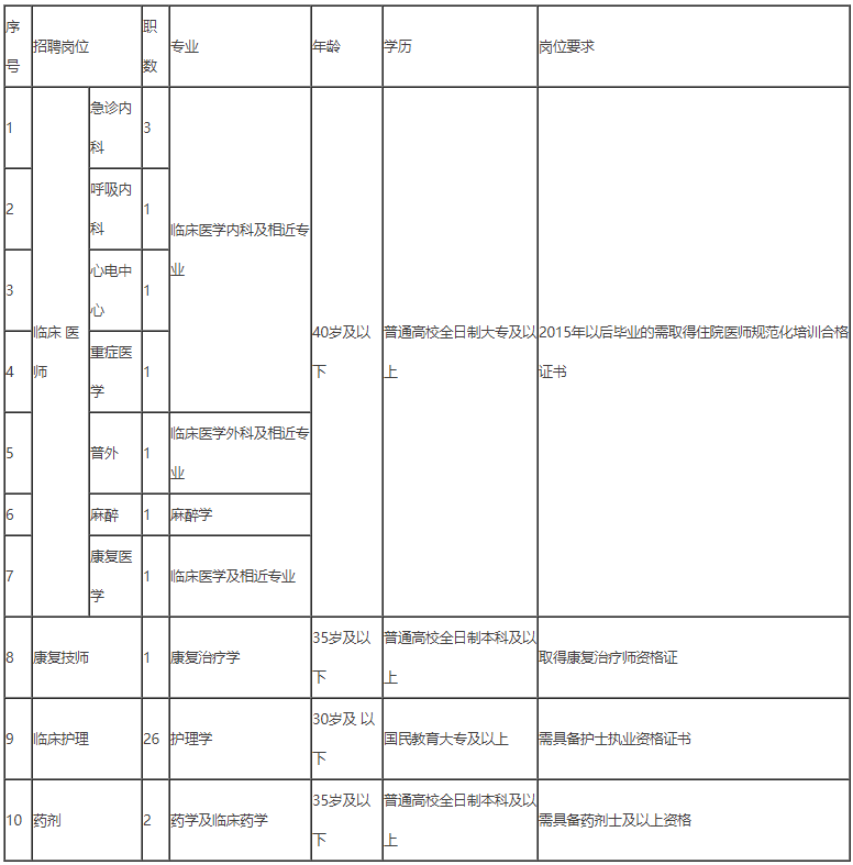 ③长期接受报名:符合招聘条件且具备执业医师及以上资格证书的,长期招聘。