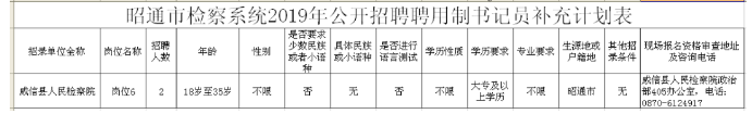 注意:笔试等其余相关事项请参照《昭通市检察系统2019年公开招聘聘用制书记员公告》。