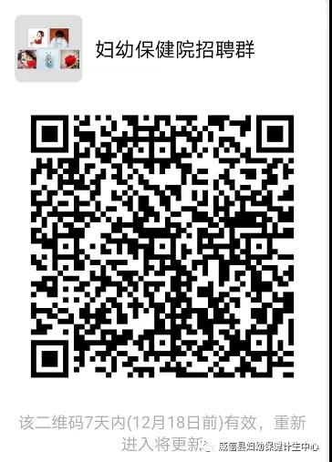 (三)请各位报考人员扫码加入“妇幼保健院招聘群”下载招聘报名表: