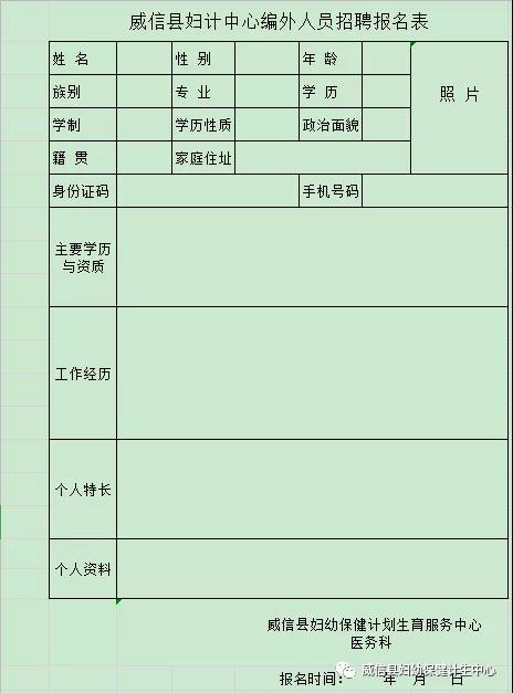 2、报名地点:威信县妇幼保健院人事科(7楼办公室)